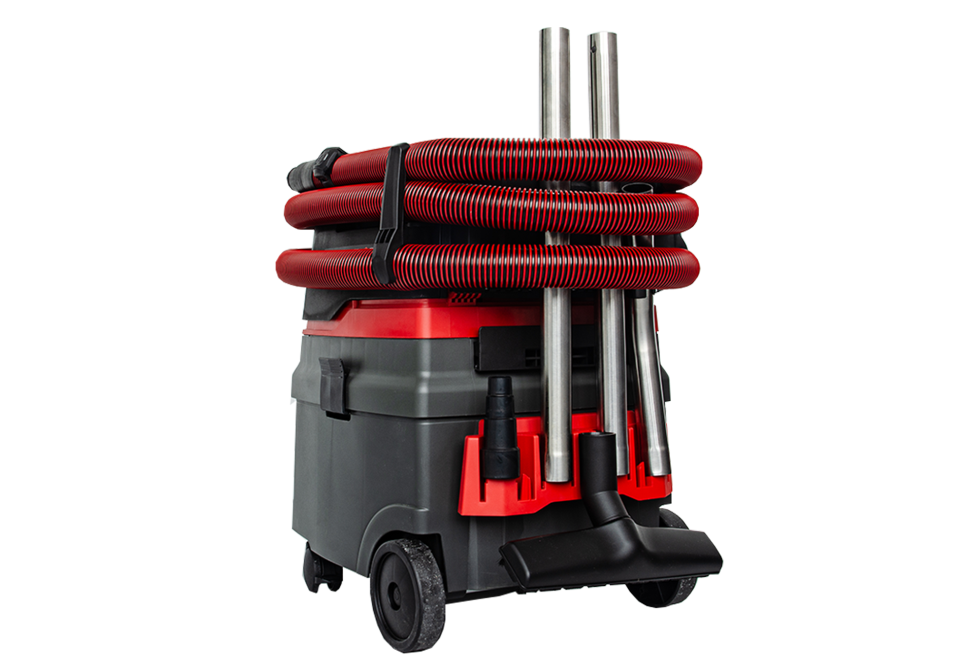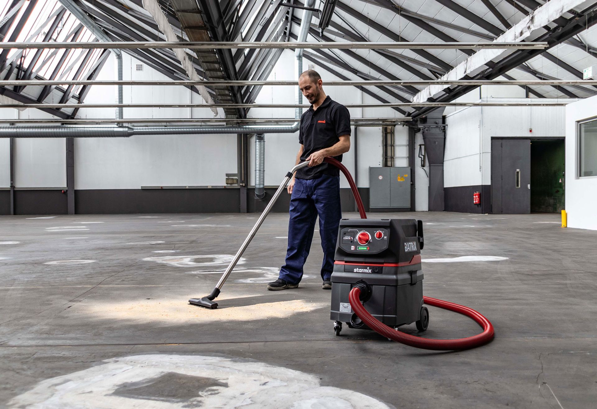 Der Starmix Akkusauger ist auf höchsten Bedienkomfort und maximale Vielseitigkeit ausgelegt. Die Cordless Control (CoCo) Funktion ermöglicht eine automatische EIN/AUS/AUTO-Steuerung über das angeschlossene Akku-Elektrowerkzeug, was den Arbeitsablauf erheblich vereinfacht. Die 3-stufige Leistungsregulierung erlaubt eine präzise Anpassung der Saugleistung an die jeweilige Anwendung. Als Teil des CAS (Cordless Alliance System) ist der Sauger mit Akkus und Ladegeräten zahlreicher Hersteller kompatibel. Praktische Details wie die 2 ausklappbaren Haken für die Schlauchaufbewahrung und die robuste Kunststoff-Bauweise mit den Abmessungen 45 x 40 x 57,5 cm und einem Gewicht von 12,5 kg unterstreichen die Profi-Ausstattung und die Eignung für den harten Baustellenalltag.